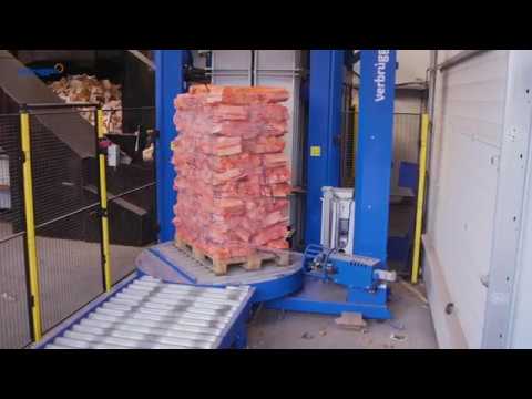 Verbruggen palletizers are particularly suitable for processing bags of non-food products because of special features allowing round and irregular shape of products such as charcoal and fireplace wood to be stacked in a compact and tall format up to 2,5 meters.